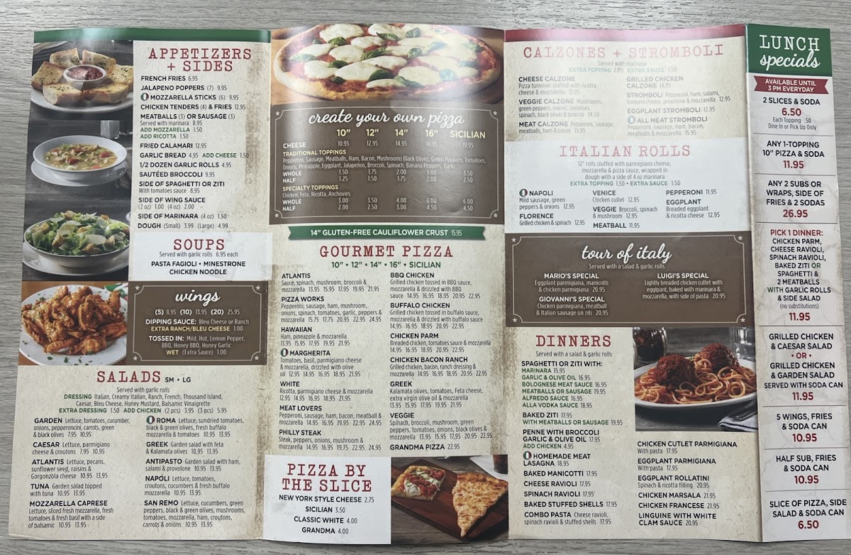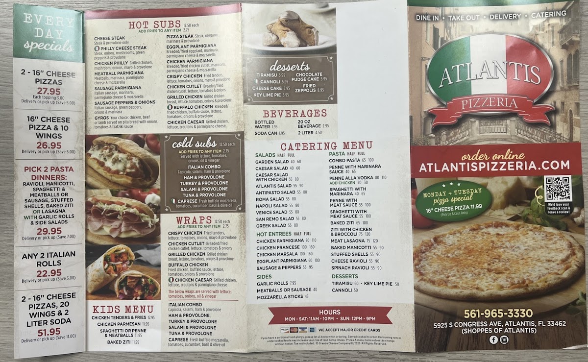 When you're looking for an unforgettable meal, the Atlantis Pizzeria Menu offers something for everyone. Nestled at 5925 S Congress Ave in Atlantis, FL, this cozy spot brings a delightful blend of classic and innovative pizza options that will make your taste buds dance. Whether you're craving a traditional Margherita, something with a little more flair like their signature seafood pizza, or a hearty slice of deep-dish, the menu caters to all pizza lovers.
